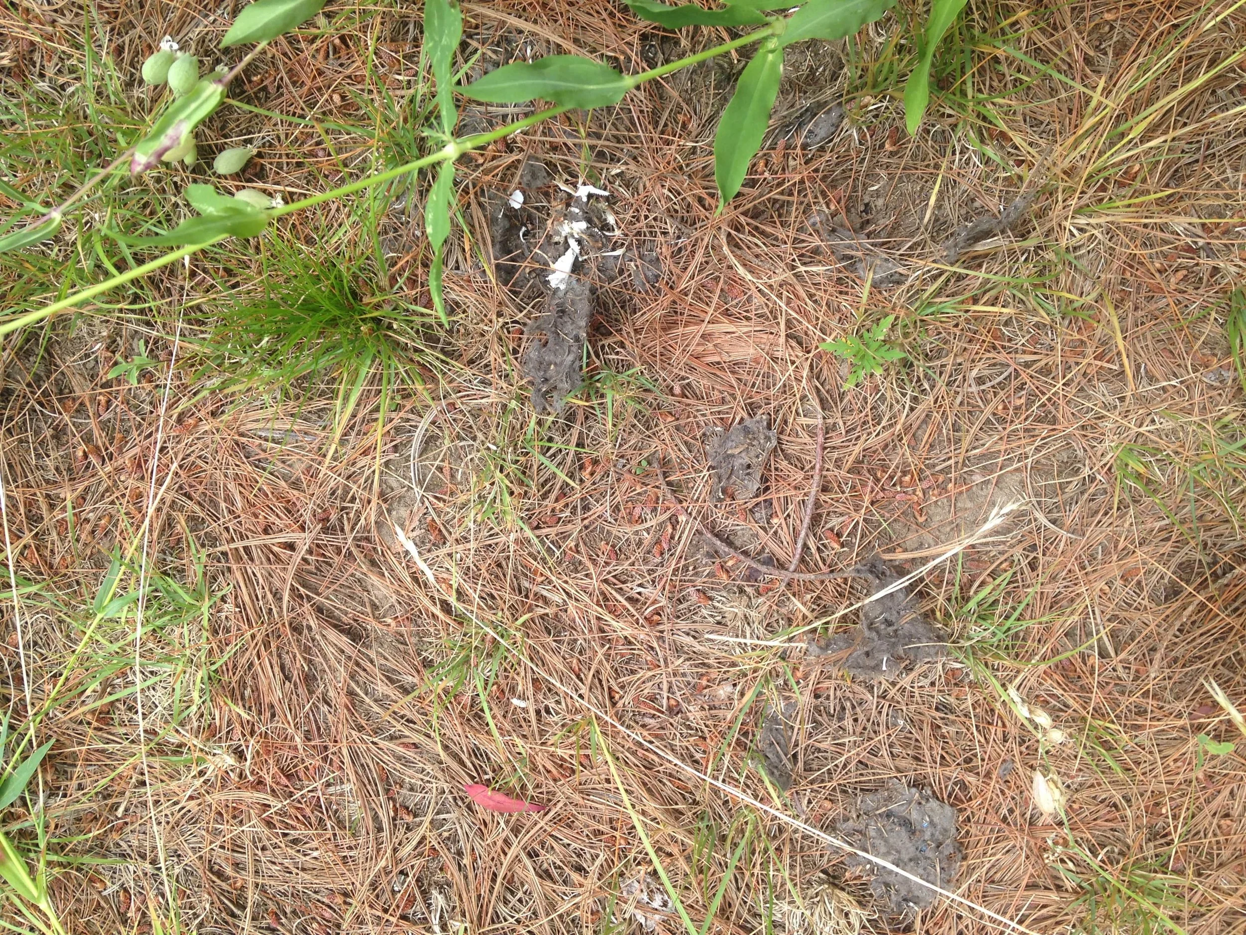 Only an hour into our meander through Allen Park Conservation Area we came across some small fawn trail which we were backtracking up a steep hill. When we got to the top a couple of us were looking intently at the ground trying to stay on the fawn trail. I remember staring at the grass really hard, as though I could stare hard enough the grass itself would burn away and only the sandy trail would remain. I saw grasses, pine needles, White Campion (Silene latifolia), owl pellets, Ragweed (Ambrosia artemisiifolia) sprouts, …. wait a second. I went back to the owl pellets. There were many of them, all fairly flattened, and kind of strewn about, as if they had been rained on many times and perhaps walked on by many hikers unaware they were underfoot. Luckily the pillowy duff of pine needles, with sand below, along with the mixed grey hairs of the pellet were cushion enough to cradle many of the bones so that they did not break under compaction.